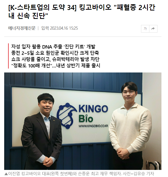 2023-11-03![[K-스타트업의 도약 34] 킹고바이오 "패혈증 2시간 내 신속 진단"](/img/press/media-68.png)